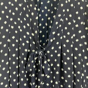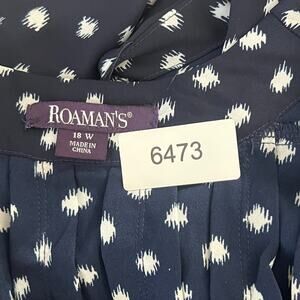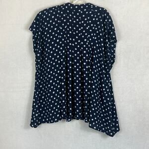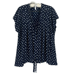 Roaman's Women's 18W Blue Polka Dot Tie Front Flutter Sleeve Blouse