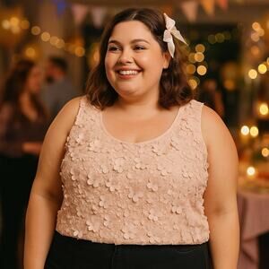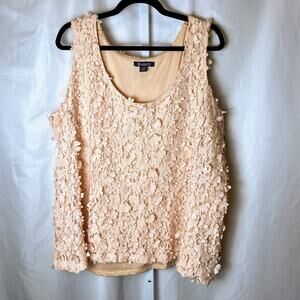 Roaman’s Women’s 24W Blush Pink Lace Tank Top Floral Appliqué Romantic Coquette