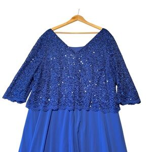 Roaman's Women's 24W Lace Popover Dress Elegant Maxi Sequin Wedding Guest Formal