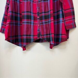 Roaman's Women's Button Up Shirt Tunic Plaid Roll Tab V Neck 22 Asymmetrical Hem