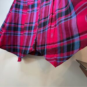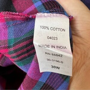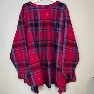 Roaman's Women's Button Up Shirt Tunic Plaid Roll Tab V Neck Size 22 Rainbow