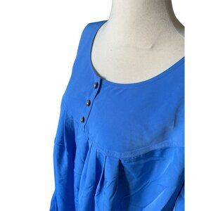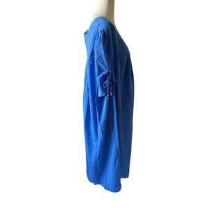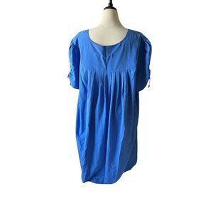 Roamans Womens C4 Size Blue Pleated Short Sleeve Dress With Button Detail 100% P