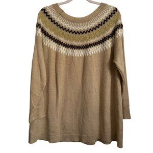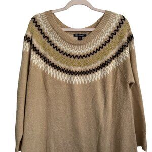 Roamans Womens Fair Isle Sweater Size 14/16WBeige with Geometric Pattern 98% Acr