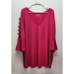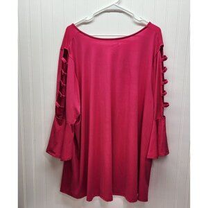 Roamans Womens Plus Size 2X Fuchsia Tunic Top With V-Neck & Ladder Sleeve Detail