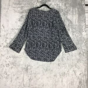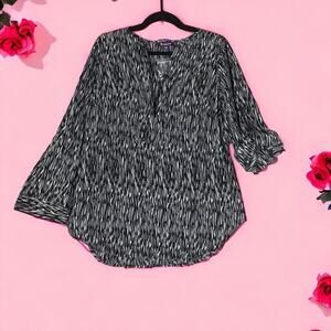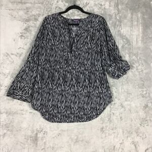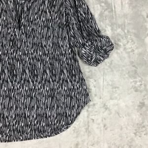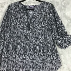 Roaman’s Women’s Size 12W Black White V-Neck Tunic Top Roll Tab Sleeves NWOT