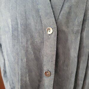 This Roman's blouse offers a sophisticated look with its blue fabric and intricate white embroidery. Designed in a size 18, it features a button-front style, adding a touch of elegance to any wardrobe.