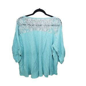 Roaman's Womens Sz 1X Green Solid Short Sleeve Blouse