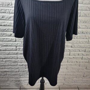 Roamans Womens Top 1X Plus Short Sleeve Black Knit Poly Blend BLA9E