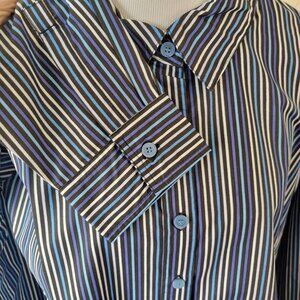 Roamans Womens Top 2X Plus Long Sleeve Collar Blue Stripe Button Up STR120E