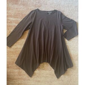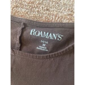 Roaman’s Women’s Cotton Brown Tunic Top M 14/16 Handkerchief Hem Long Sleeve