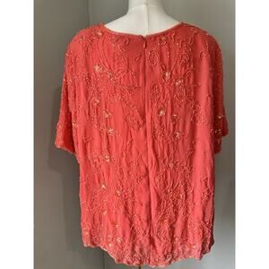 Roaman's beaded sequin coral blouse Plus 20w Cruise wear