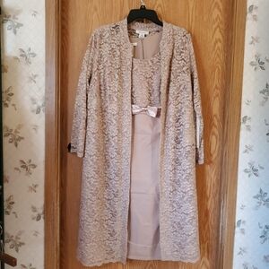New Roamans mother of the bride/groom formal sleeveless tan colored lace dress set