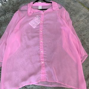 Roaman’s sheer pink button down blouse, size 2X. Never worn.