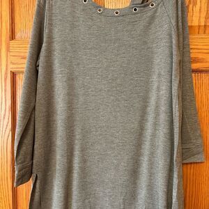 NWT gray sweatshirt with grommets around neckline. Size 12. Soft on inside. Long sleeve