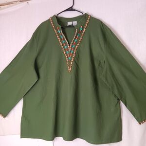 Roaman's tunic blouse,Boho Chic Hippie Plus sz 32W, linen,handmade rhinestone.