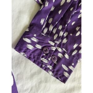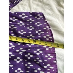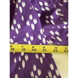 The Roaman's women's Size M Long Sleeve Long Tail Purple Polka Dot Blouse is a stylish and versatile addition to any wardrobe. Made from a blend of polyester and cotton, this blouse features a collared neckline, cuffed button sleeves, and a relaxed fit. The long tail adds a unique accent to the blouse, making it perfect for year-round wear in any season. Easy to care for with machine washable material, this blouse combines comfort with a touch of feminine flair.
