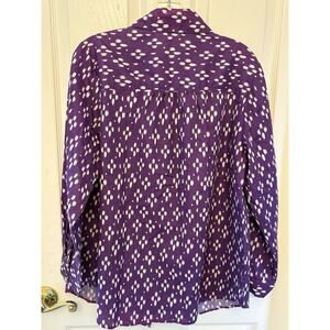 Roaman’s womans Size M Long Sleeve Long Tail Purple Polka Dot Blouse