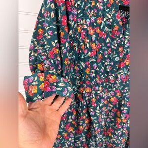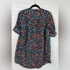 Roaman’s women’s floral green v-neck hi-low tunic. Size 12W. The colors of this are simply gorgeous. The sleeves have the ability to roll up or wear down. Pictured both ways. Great used condition.