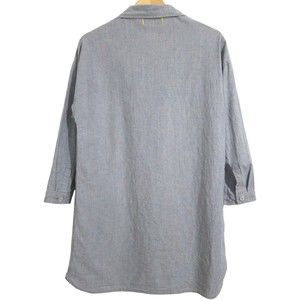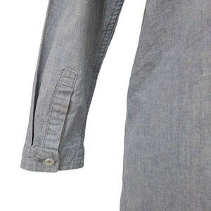 Crafted from a blend of kapok, linen, and cotton, this chambray fabric tunic shirt is machine washable for easy care. Its sized medium and regular fit make it a comfortable wear and a must-have for every woman's wardrobe.