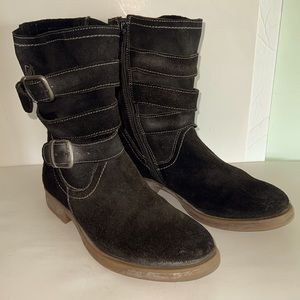 Roan 7.5 Black Suede Distressed Zipper Boots Strappy Design