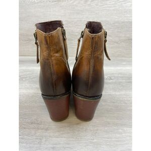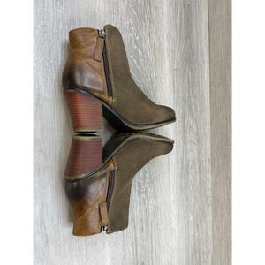 Roan Lina Women's Bootie Ankle Biker Boot Side Zip Heeled Suede Leather 6 Brown.
