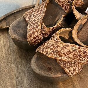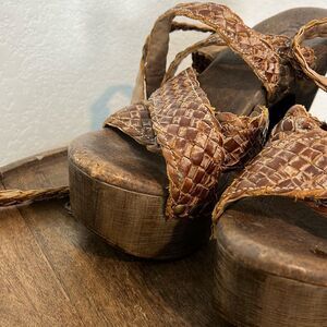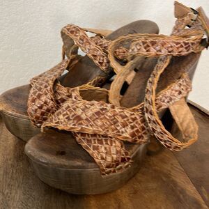 Roan Rodeo Tan Brown Leather Lynlee Heeled Platform Sandals Women's Size 8
