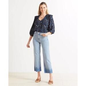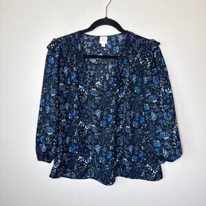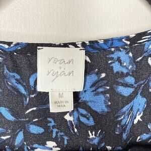 Roan + Ryan Ellis V-Neck Floral Blouse Medium Smocking Ruffle 3/4 Sleeves