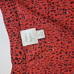 Roan + Ryan Evereve Red Olivia Leopard Blouse L NWOT