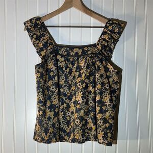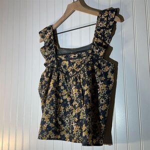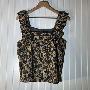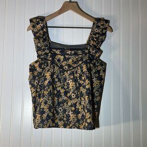 Roan Ryan Floral Ruffle Strap Tank S Cottage Boho Romantic Prairiecore Cotton