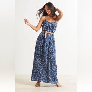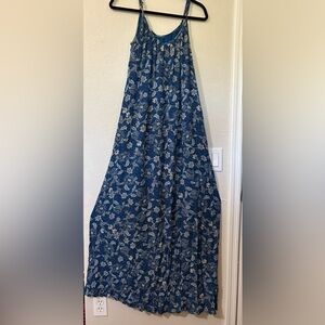 Roan + Ryan Willa Chic Blue Floral Maxi Dress w/ Adj. Straps, Liner and Pockets.