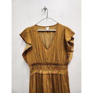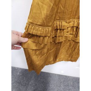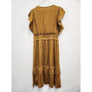 Roan + Ryan Womens Talulah BOHO Midi Dress Small Mustard Yellow Ruffled V-Neck