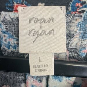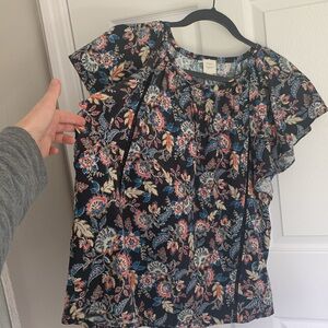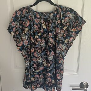 Roan & Ryan black floral paisley flutter sleeve top size large