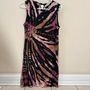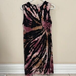 Roan & Ryan sleeveless gray pink multi color tie dye print dress Size Small