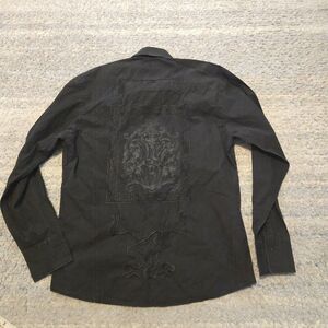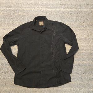Roar Button Up Shirt Long Sleeve Mens L Black Embroidered. Normal sign of wear, please take good look at all of the pictures for the exact condition and measurements.