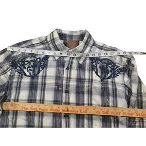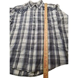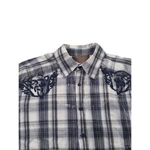 Roar Plaid Button Up Shirt Men Sz L Embroidered Blue Gray Designer