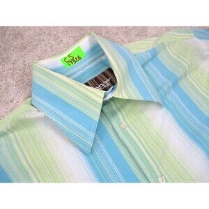 Roar Shirt Men Extra Large XL Blue Green Striped Cotton Blend Casual Button Up