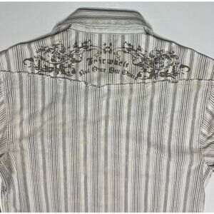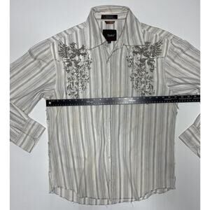 Roar Shirt Men Large Long Sleeve Button Up White Striped Distressed Hems Western