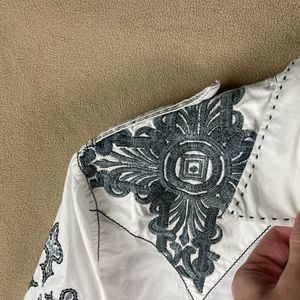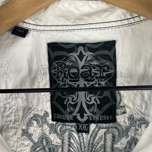 Roar Shirt Mens Extra Large White Embroidered Buckle Wings Crosses Long Sleeve