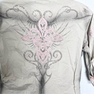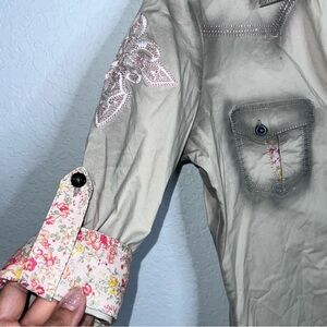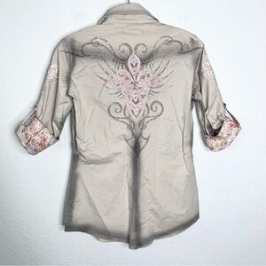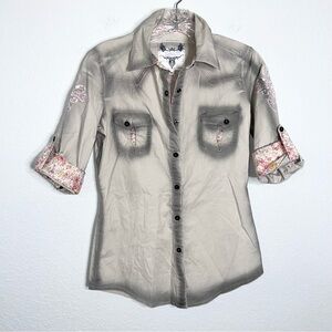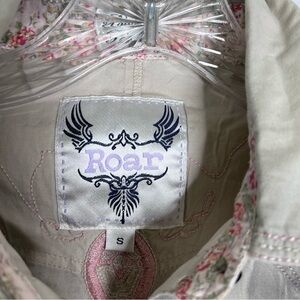 Roar Shirt Womens Small Button Up Embroidered Western Cowgirl Floral Cream Gray