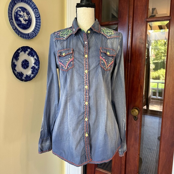 Roar | Western Button Down Shirt, Embroidery & Rhinestone Details, Size M
