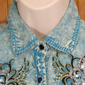 Roar Women's Western Long Sleeve Snap Shirt Rhinestones Bling Size Small