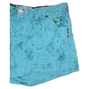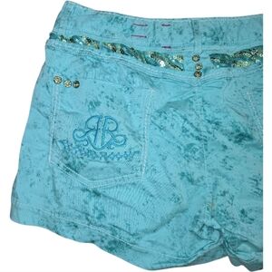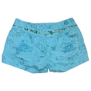 Roar Y2K Low-Rise Shorts 29 Distressed Sparkles Sequins Turquoise