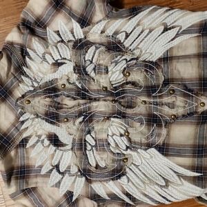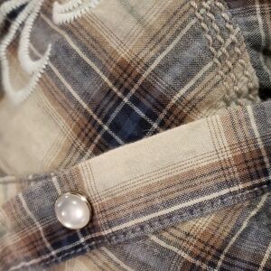Pearl snap roar anfel wing embroidered plaid long sleeve shirt by roar excellent condition no issues size xs