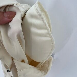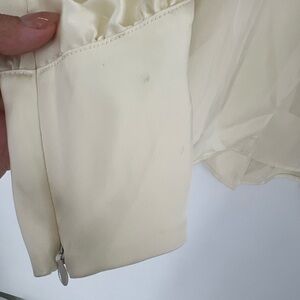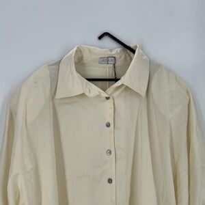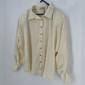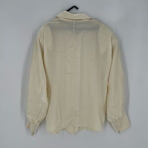 Satin button front shirt. Removable shoulder pads.