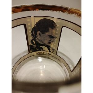 Roaring Twenties glasses featuring Tom Mix (The Untamed 1926), Lionel Barrymore (America 1924), and Buster Keaton (The General 1927).