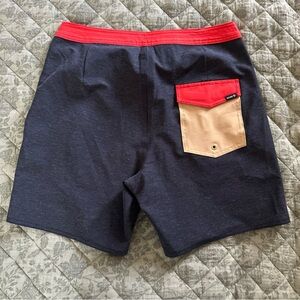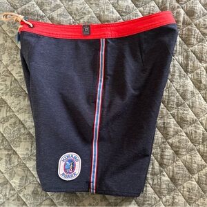The Roark x Hinano Board Shorts in Gray are a stylish and functional addition to any man's swimwear collection. Made from a blend of polyester and spandex, these board shorts feature a solid pattern and a comfortable stretch fit. With a back pocket and above-the-knee length, they are perfect for surfing, lifeguarding, or just lounging by the pool. The tropical theme and fish-inspired design make these shorts ideal for a day in the sun, whether you're in Hawaii or simply dreaming of your next vacation. Blokecore, bloke core