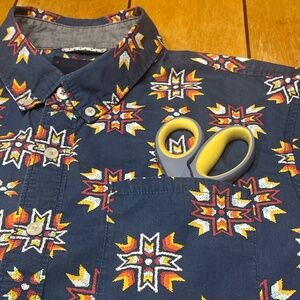 Roark Button Down Shirt Aztec Southwestern Pattern Medium Color Blue