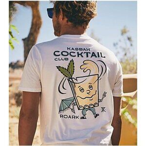 Roark Kasbah Cocktail Club T-Shirt. Graphic on left chest. Large print on back. Ribbed crew neckline. Short sleeves. 100% Cotton.