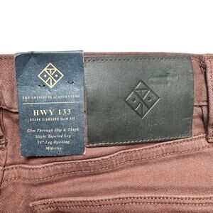 New with tags men’s Roark HWY 133 maroon broken twill denim jeans featuring slim fit and tapered leg.