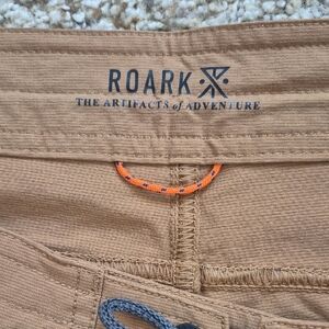 Great condition; rarely worn. 18.5" outseam/8 5" inseam. Front zippered pockets. Back pockets zipper and snap closures. Stretch fabric; quick dry. Zip fly and drawcord waist.